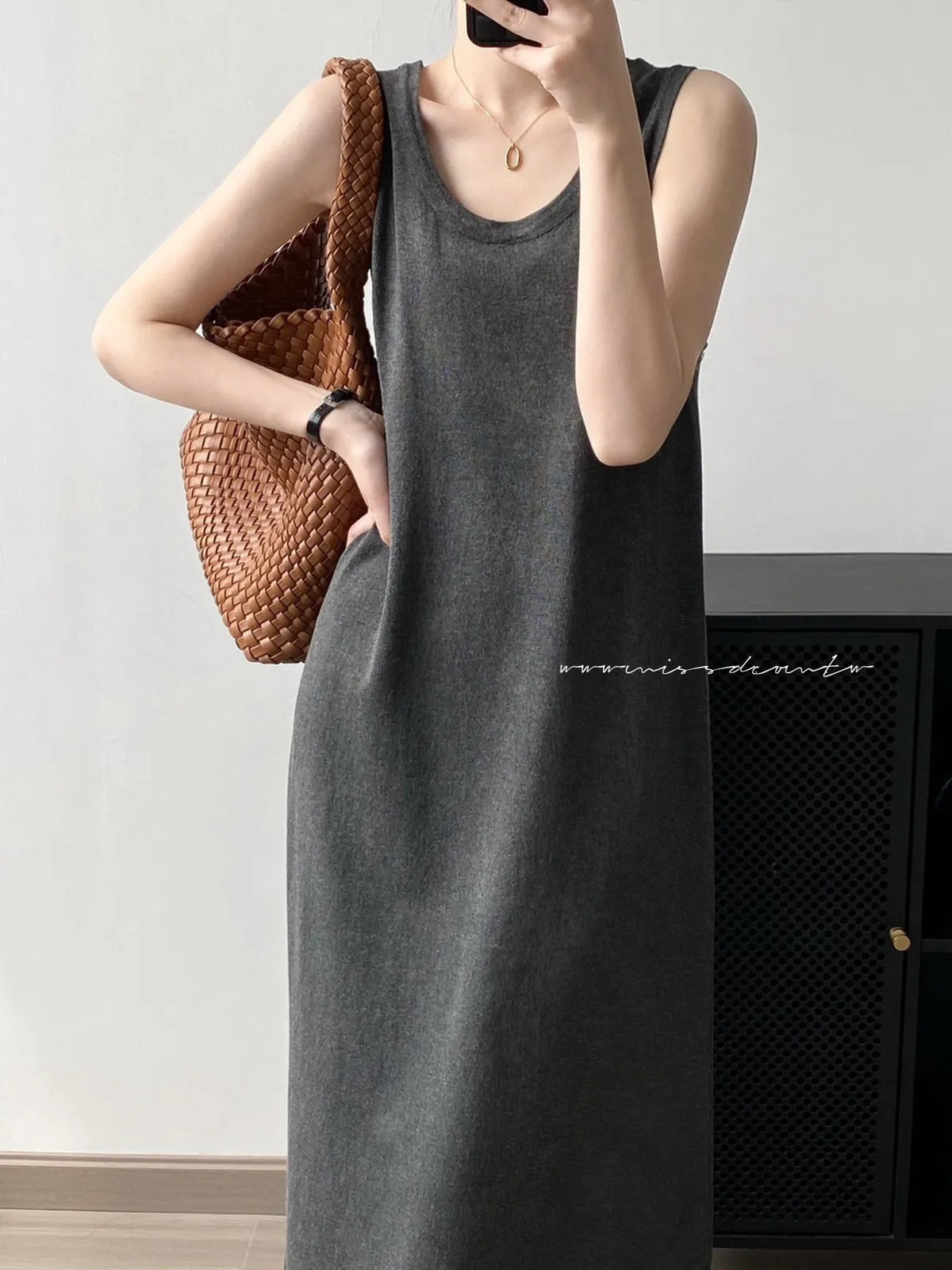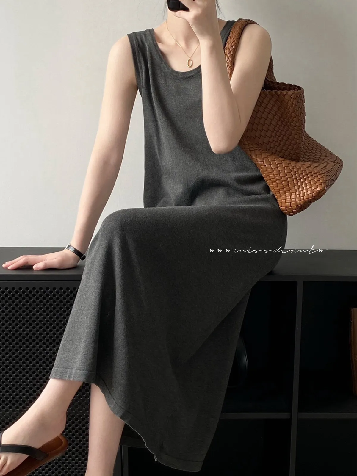 預購-細針無袖側開衩背心洋裝