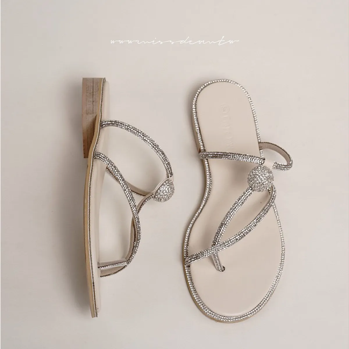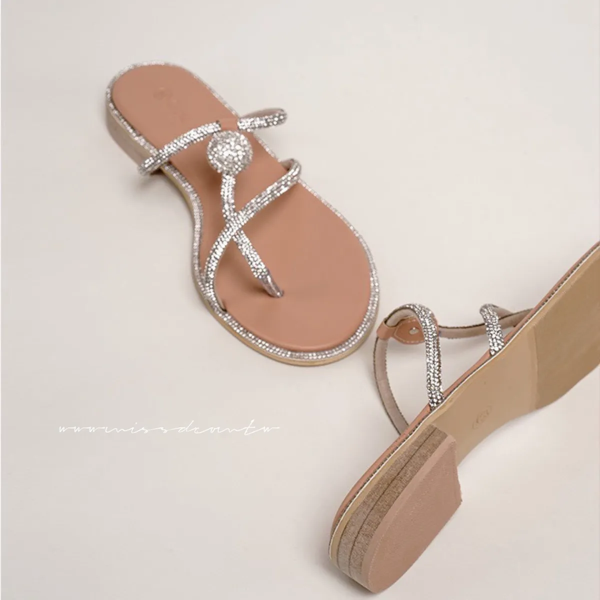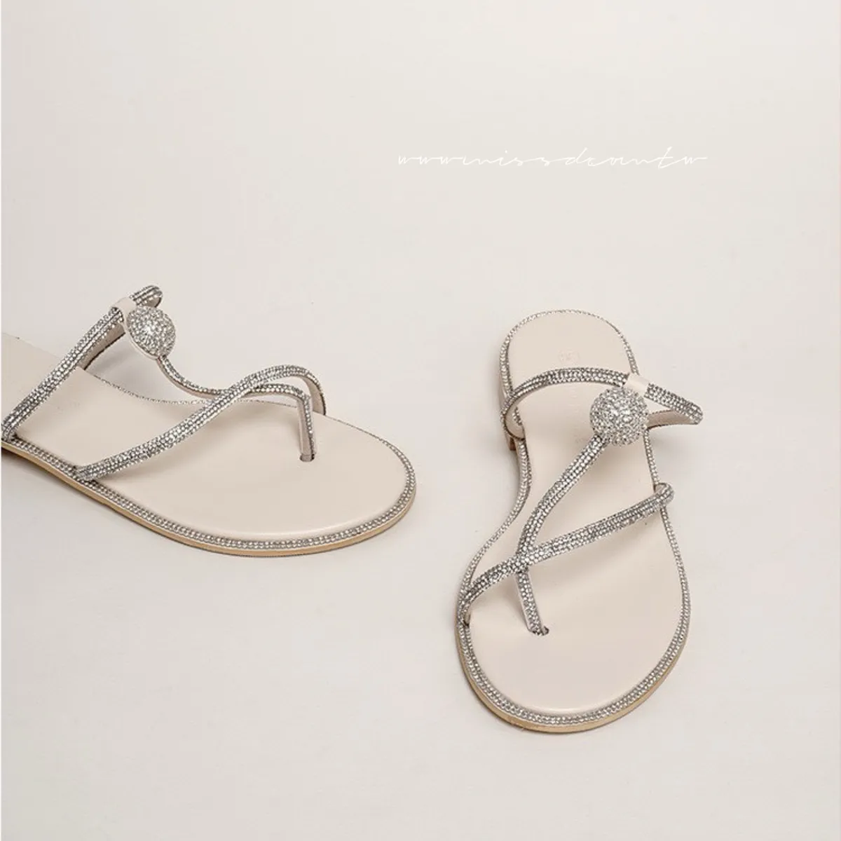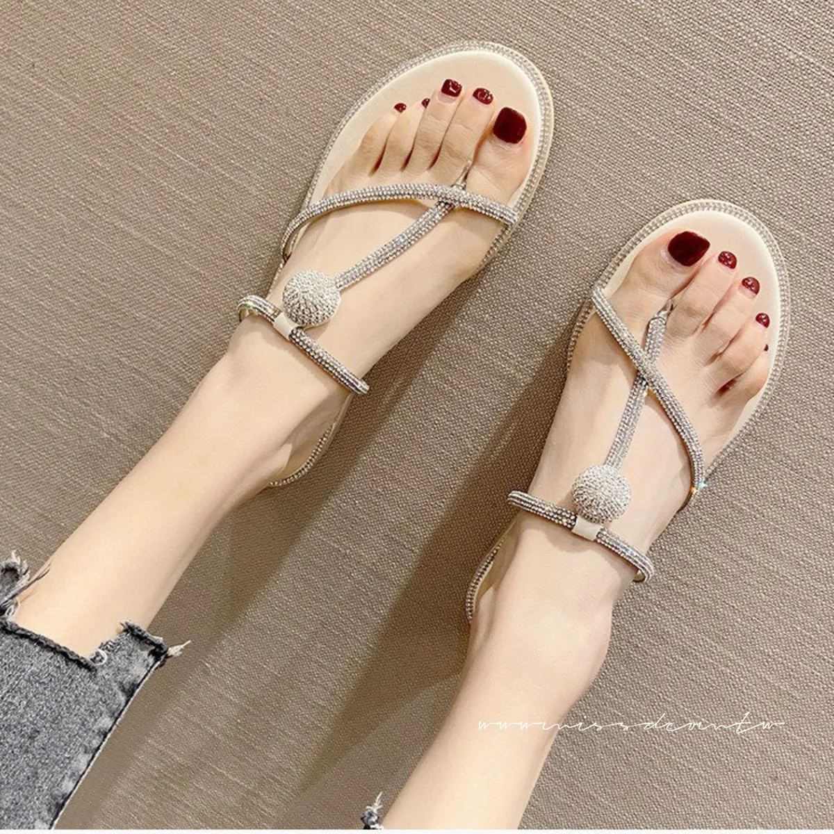 預購-水鑽造型羊皮夾腳拖鞋