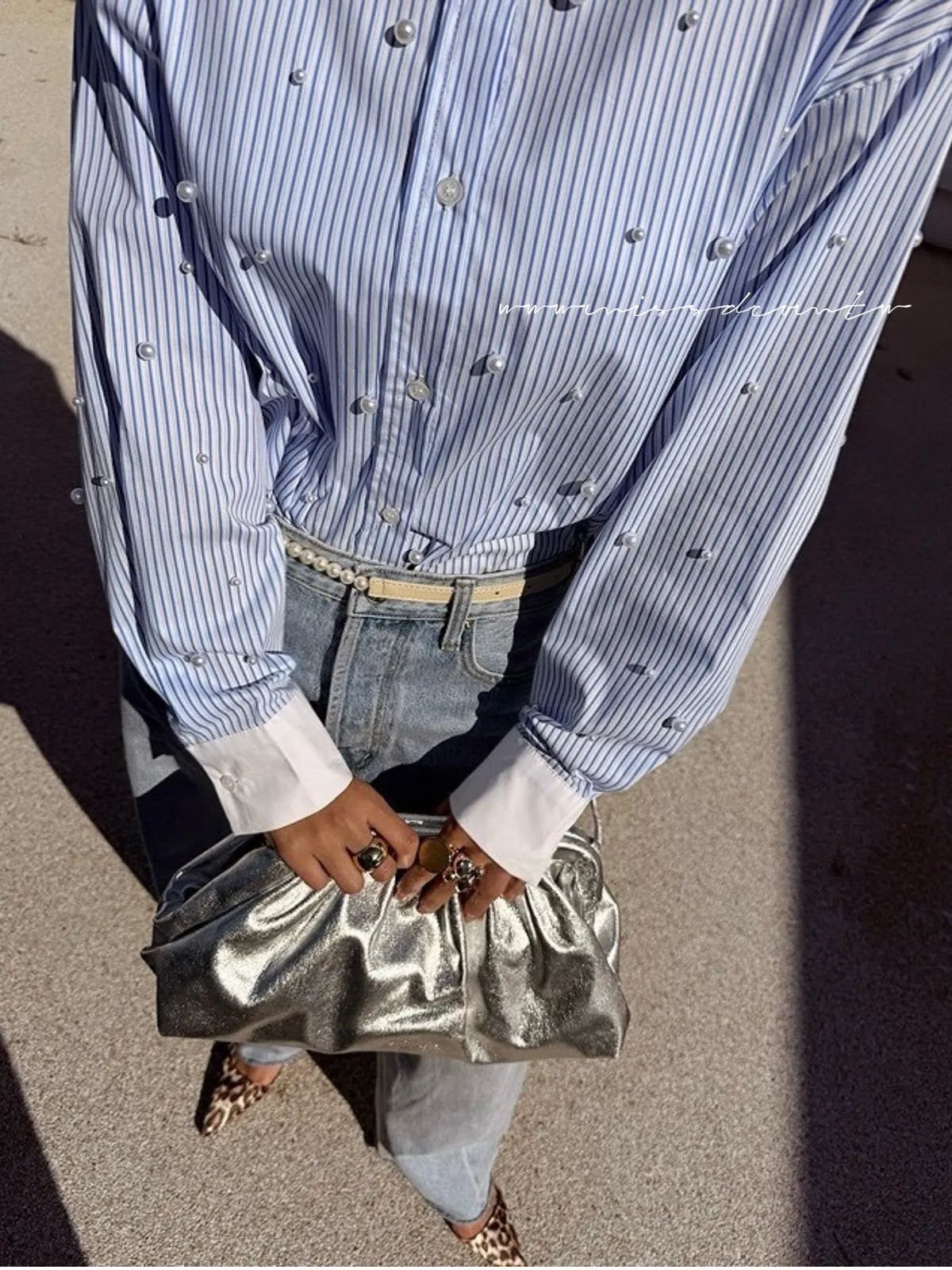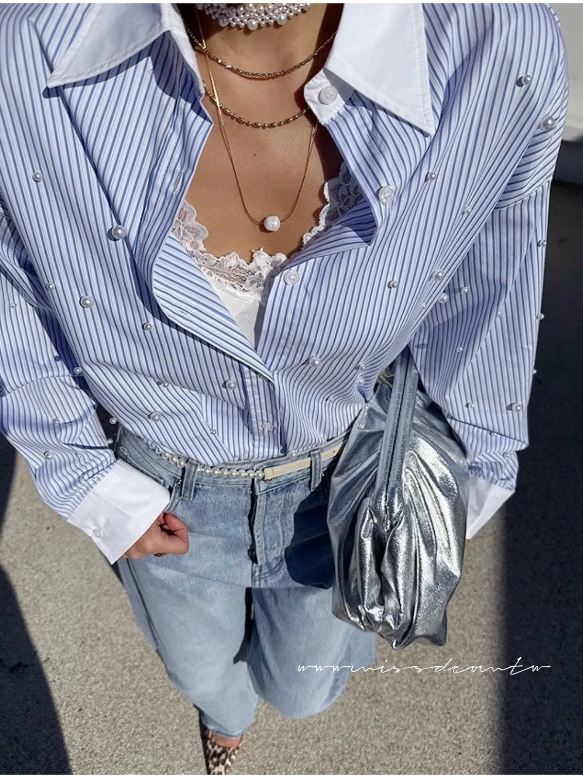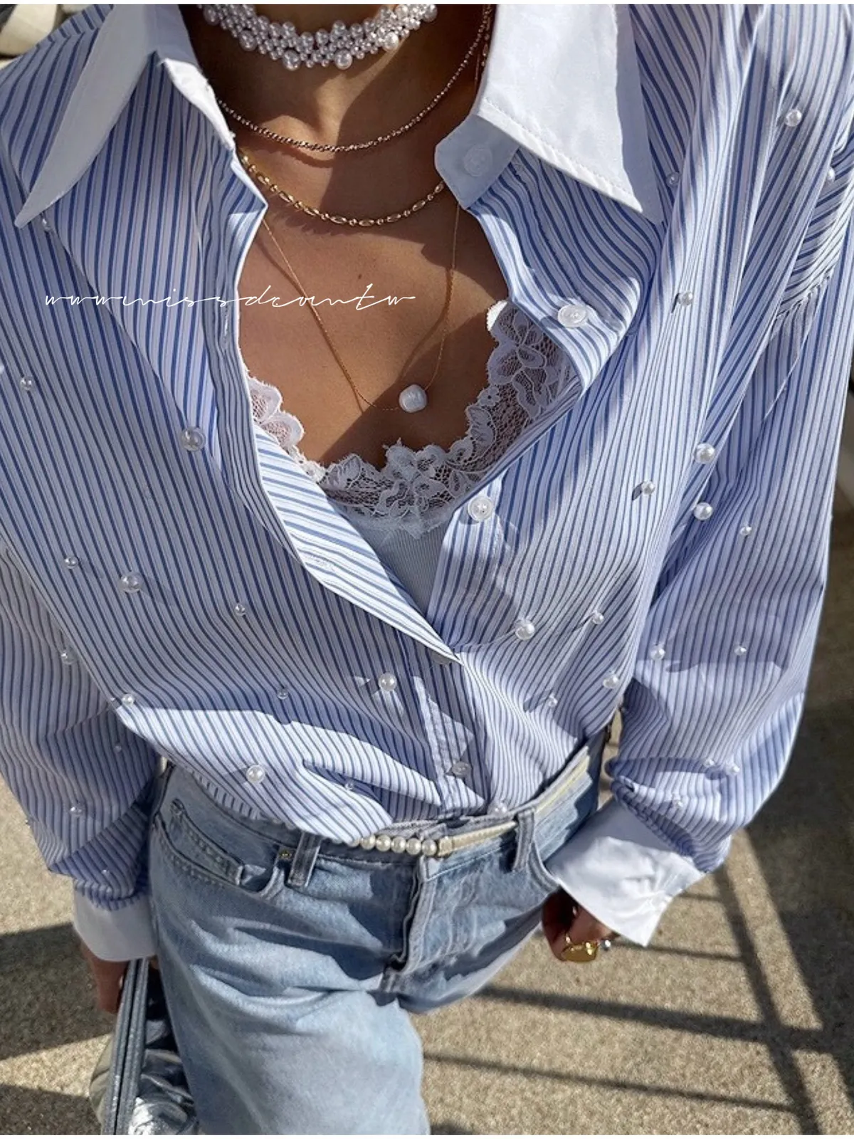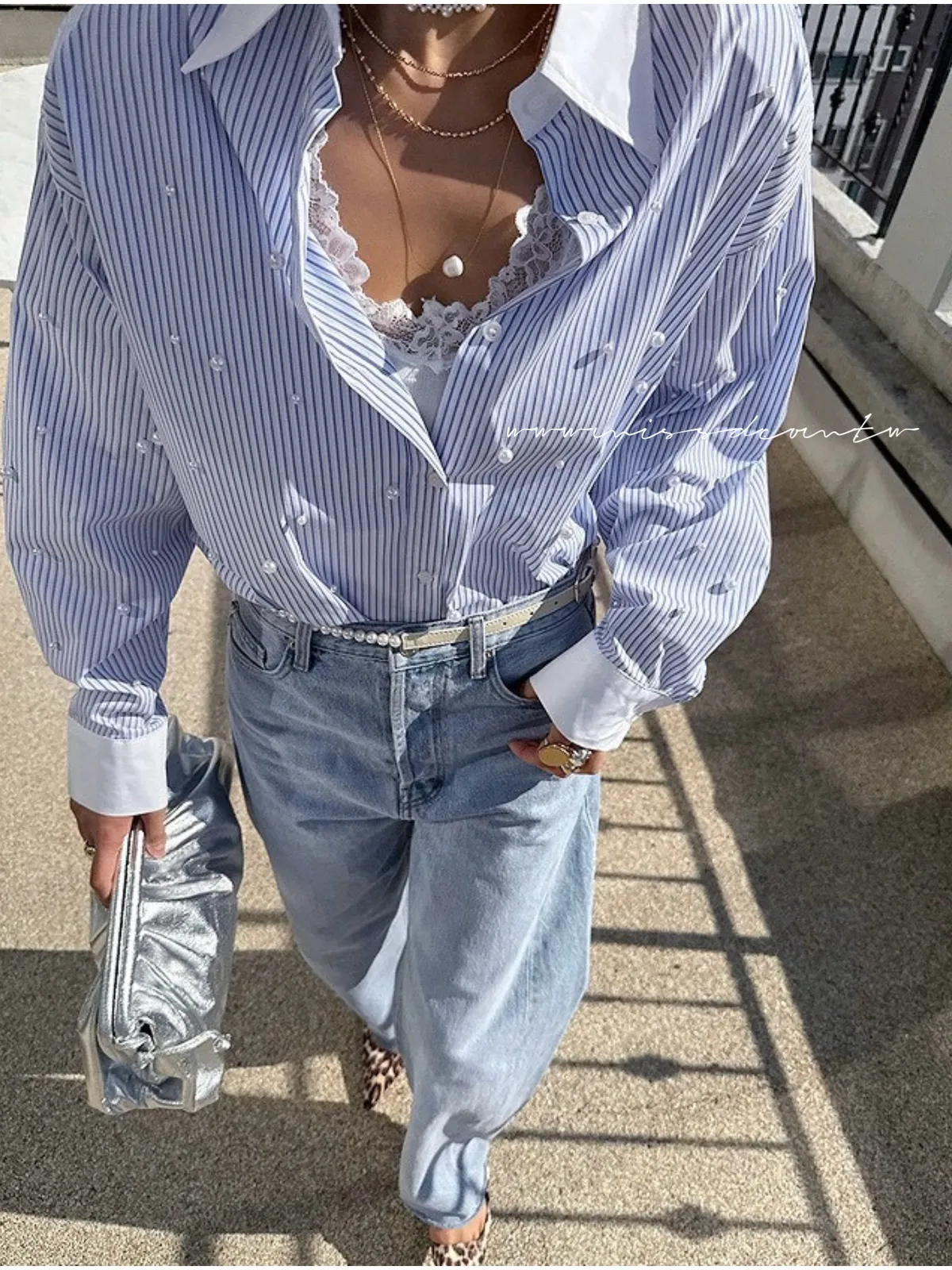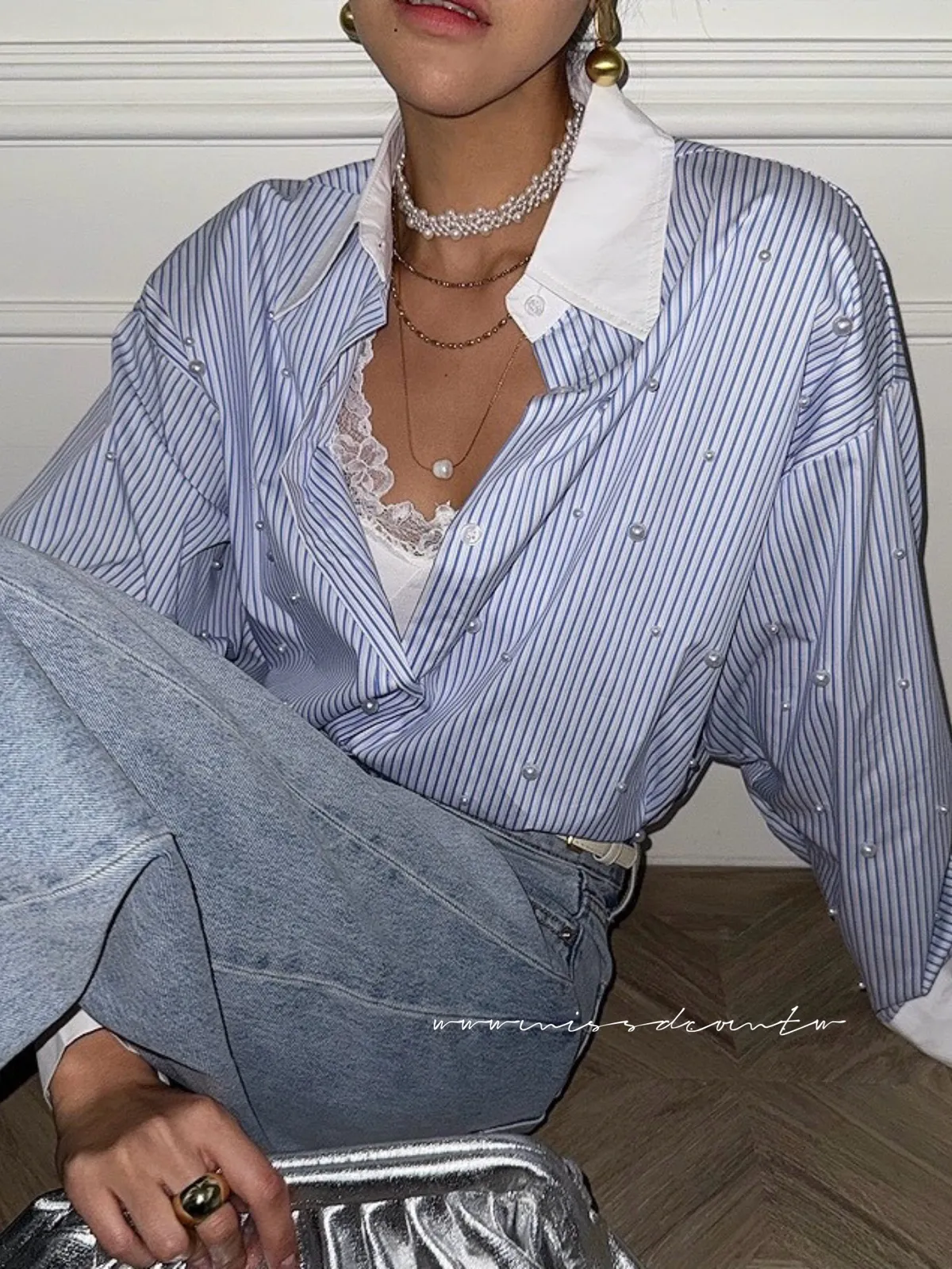 預購-直紋配色珍珠襯衫