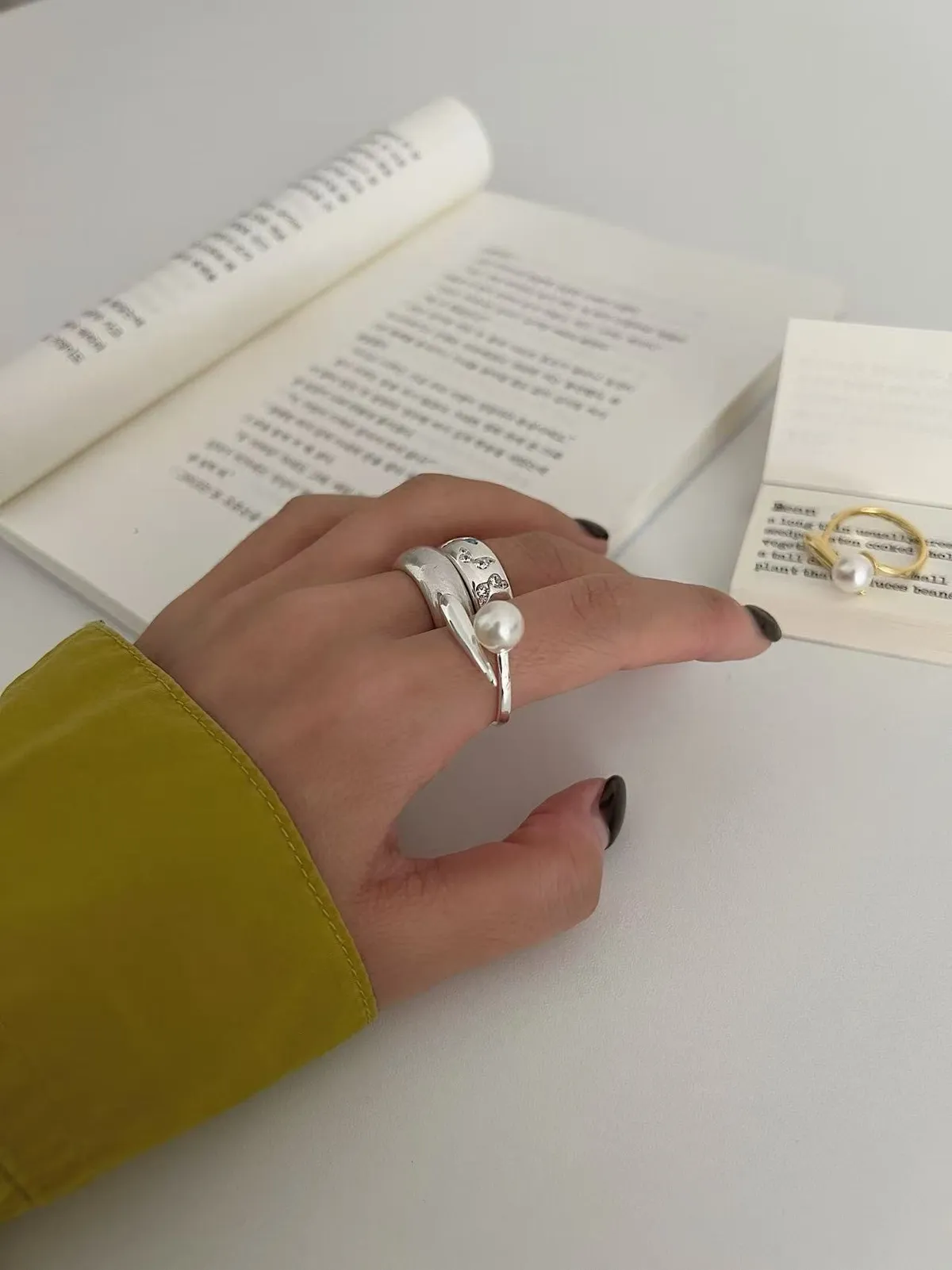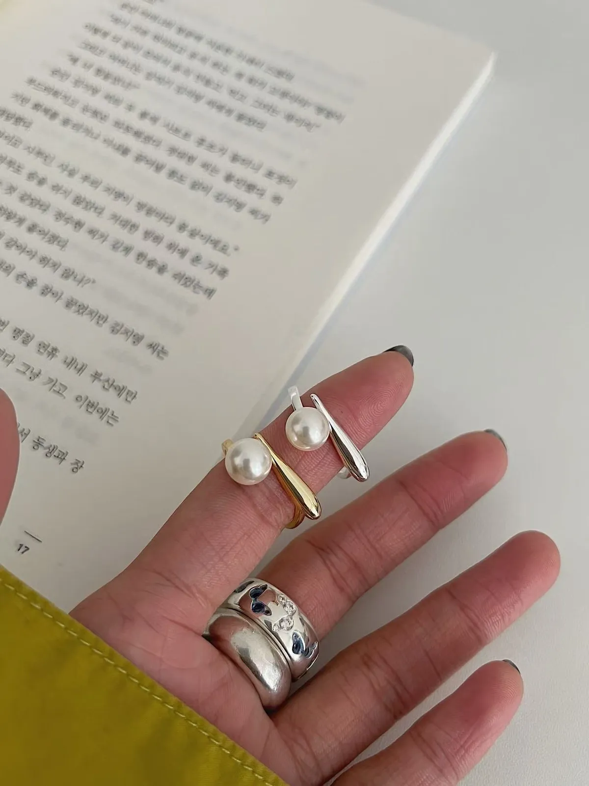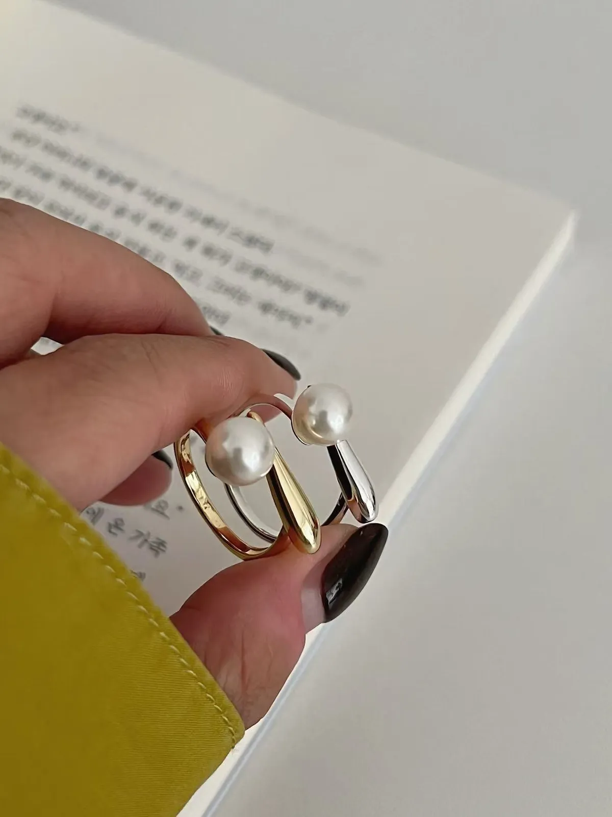 預購-一字造型珍珠戒指