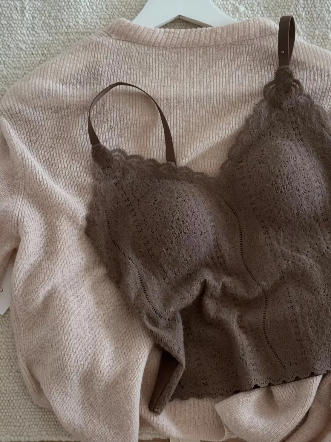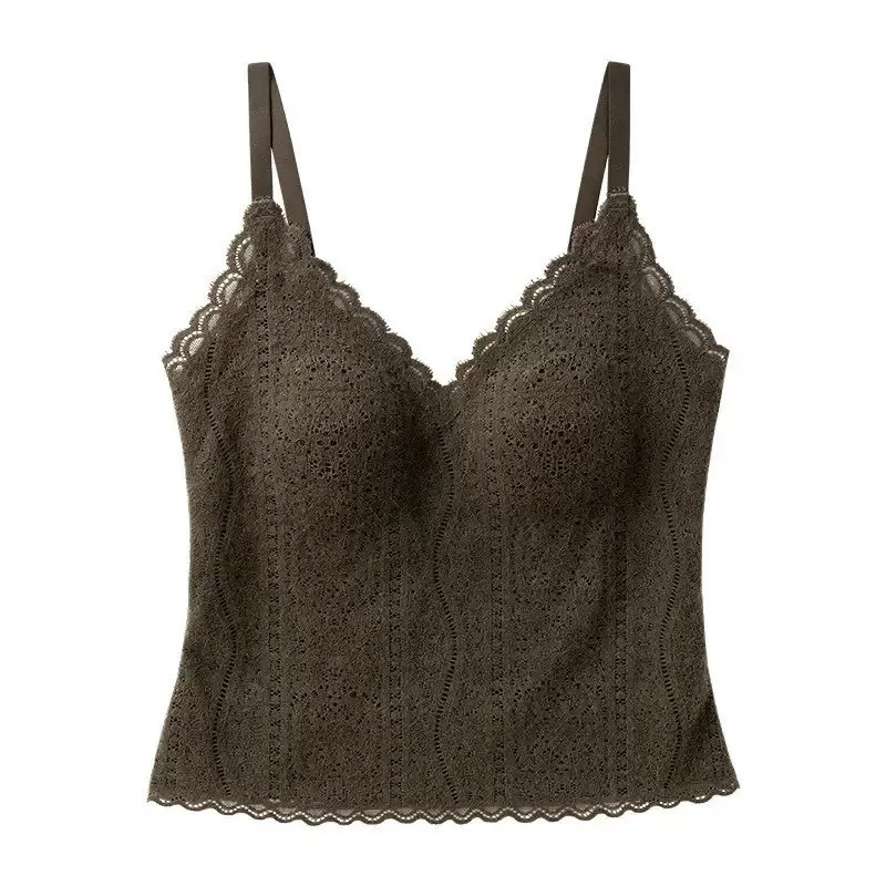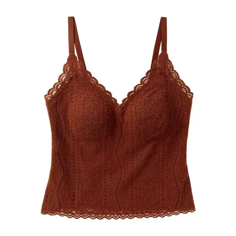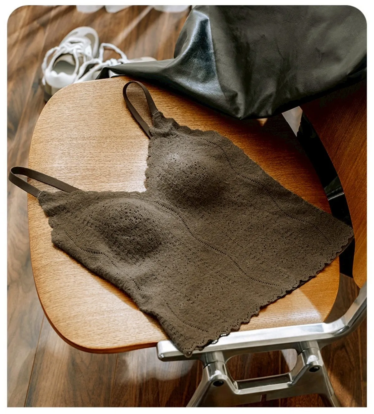 預購-肩可調磨毛蕾絲發熱罩杯背心
